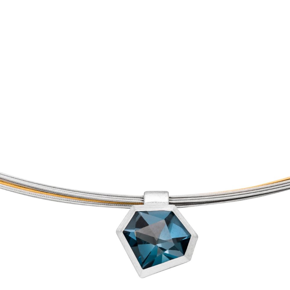 Halsschmuck aus 925/-Silber und Topas London blue im 21 century cut (K1417STLw).