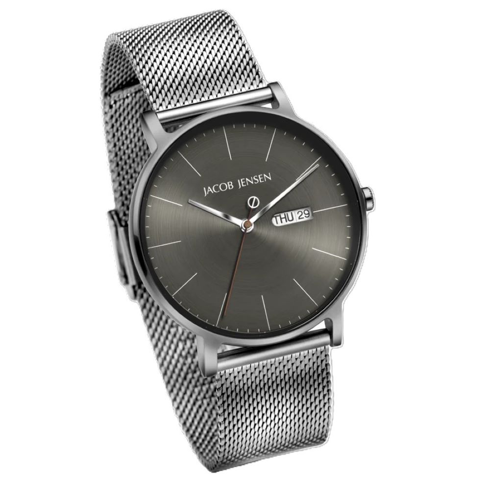 Jacob Jensen Herrenuhr Titan 169, graues Zifferblatt, Edelstahlband