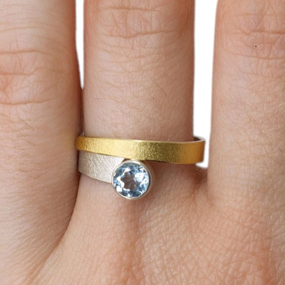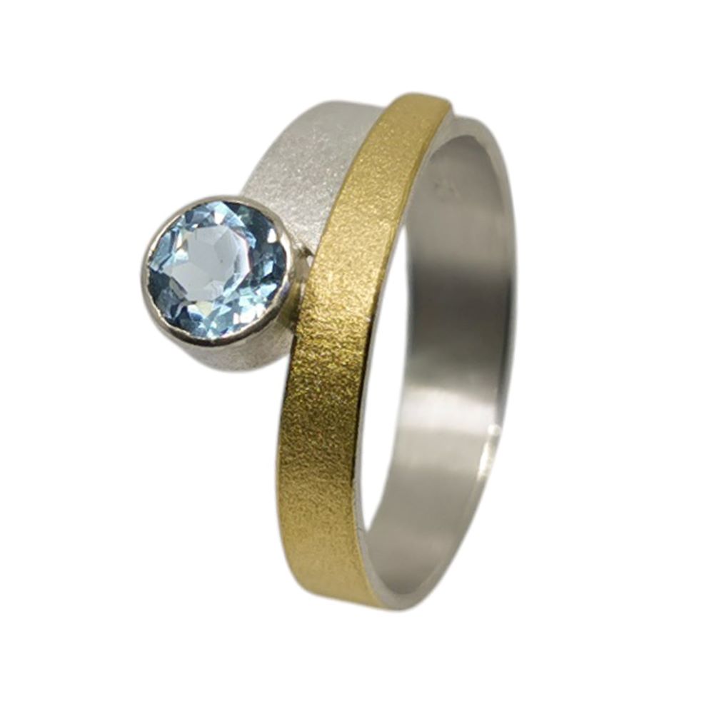 Ring Silber mit Gold und Edelstein Blautopas (R1388Tow)