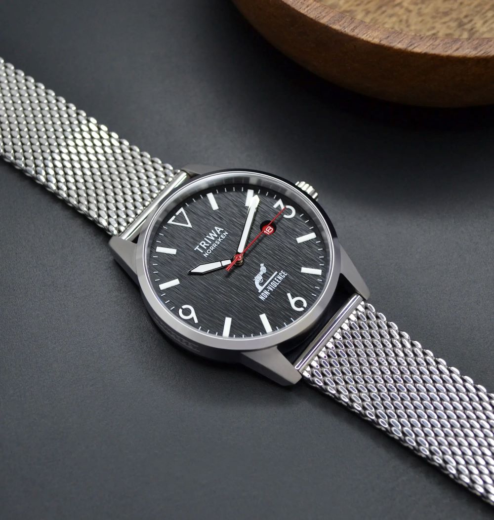 Der schwedische Uhreninnovator TRIWA und die Non-Violence Project Foundation (NVP) geben ihre neueste Zusammenarbeit bekannt: die Uhr NORRSKEN. Benannt nach den epischen Nordlichtern, die die arktische Dunkelheit durchdringen, ist diese Uhr mehr als ein Accessoire, sie ist ein tragbares Engagement für eine Welt, in der Konflikte eher mit Dialog als mit Gewalt angehen.